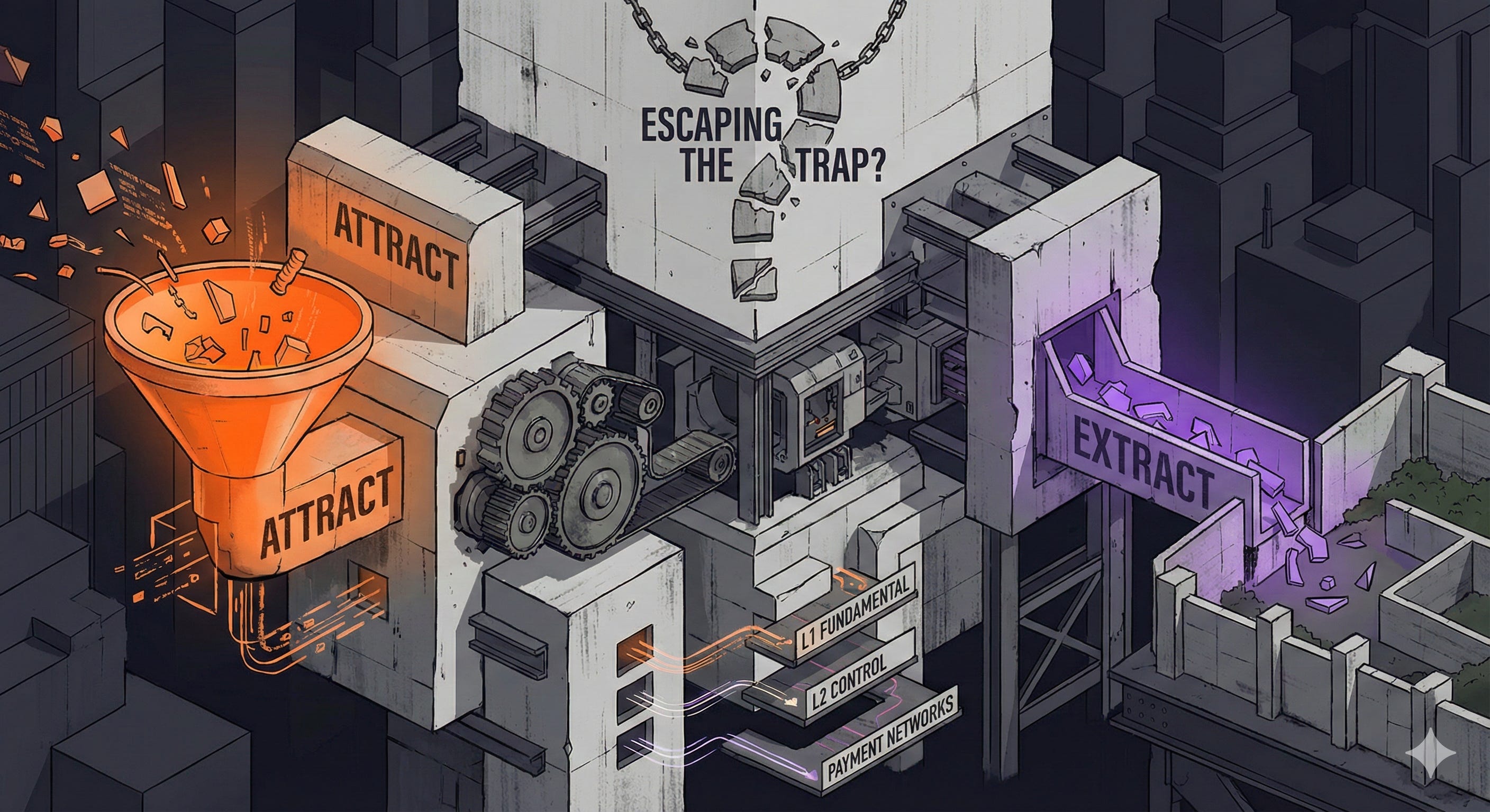 Chris Dixon’s “Read, Write, Own” gave us a framework everyone loves to cite: the attract-extract cycle. Platforms pour money into growth, cultivate
